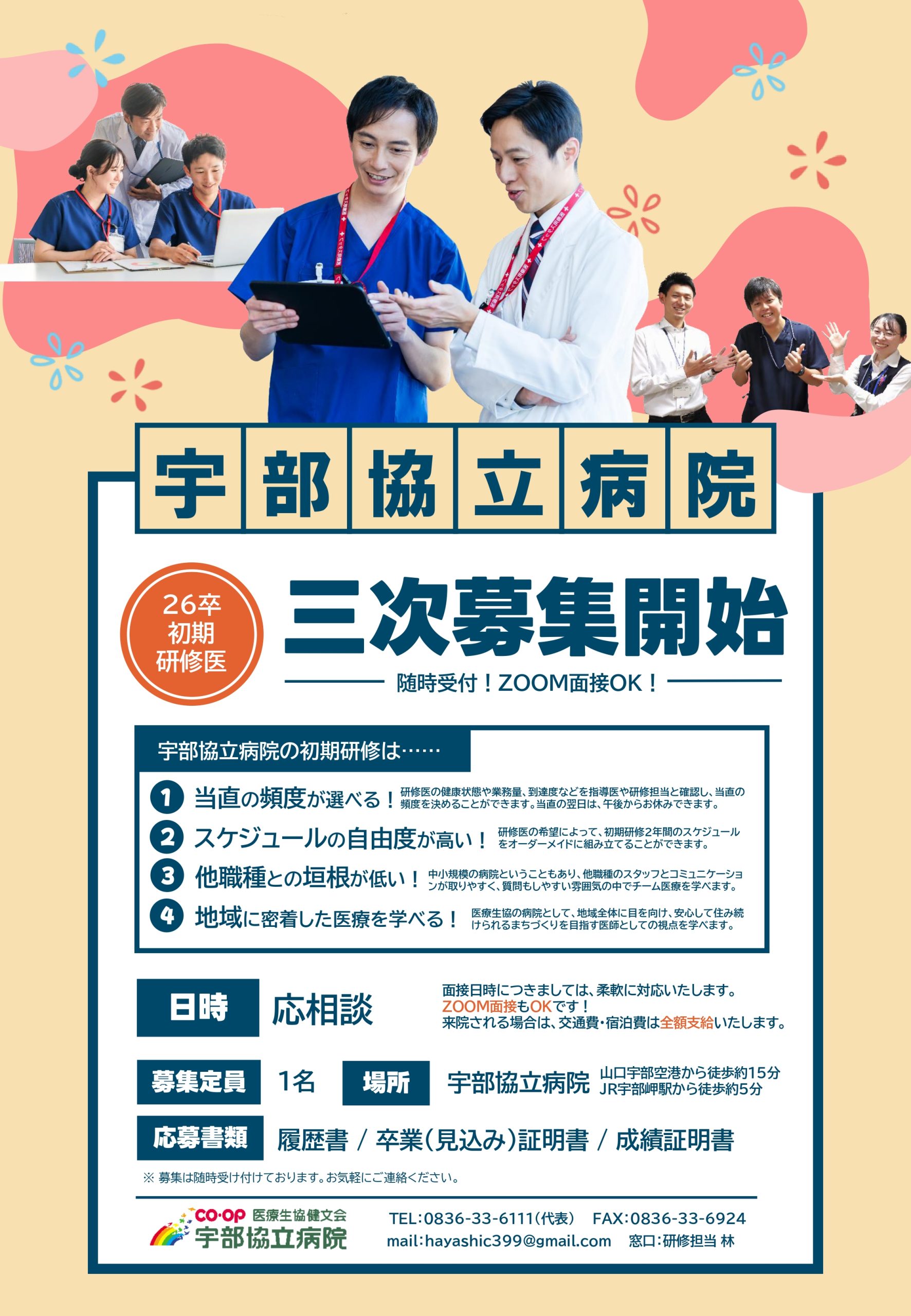 宇部協立病院 初期臨床研修 3次募集を開始いたしました!