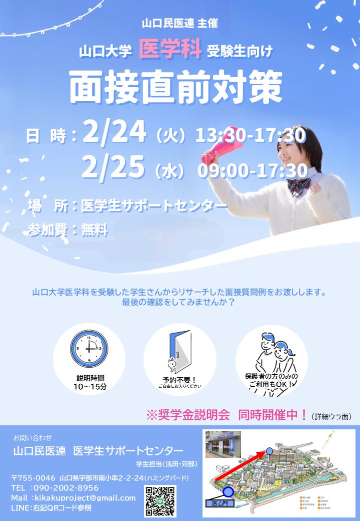 2/24(火)~25(水)、 医学生サポートセンターにて面接直前対策企画を行います!