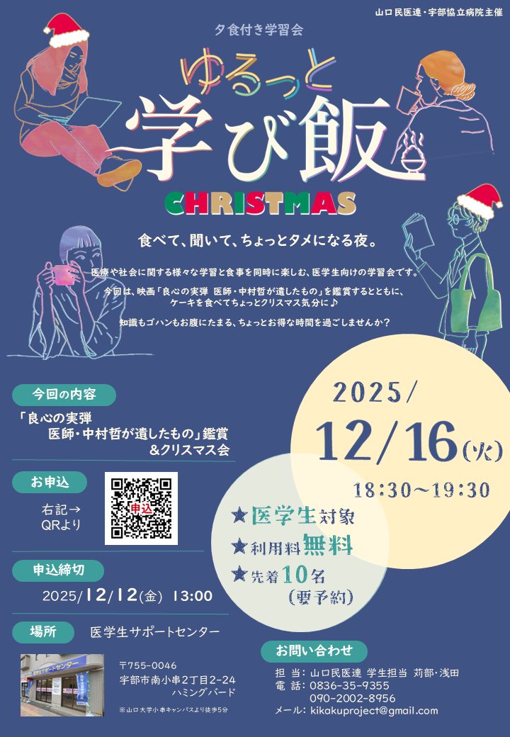 山口民医連より、「ゆるっと学び飯 」のご案内です🍚